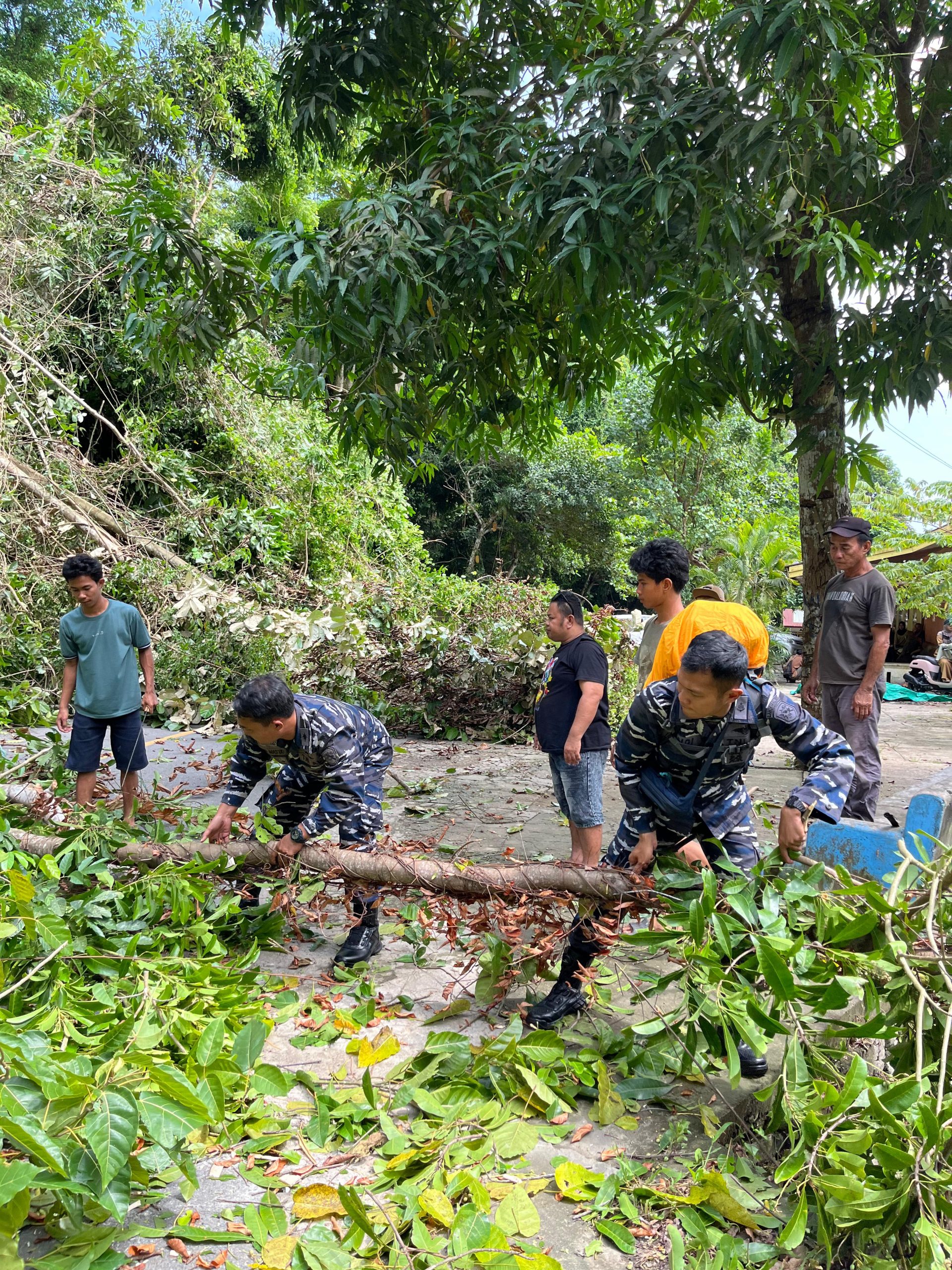 HotNews.web.id TOLITOLI — Gerak cepat dan kepedulian tinggi terhadap masyarakat menjadi salah satu wujud nyata pengabdian TNI AL. Hal ini ditunjukan pada aksi prajurit Pos TNI AL (Posal) Buol di bawah jajaran Pangkalan TNI AL (Lanal) Tolitoli secara sigap mengamankan dan membersihkan pohon tumbang yang melintang di Jalan Poros Tolitoli–Buol, Desa Diule, Kecamatan Tolitoli Utara, Kabupaten Tolitoli. Selasa (15/7).