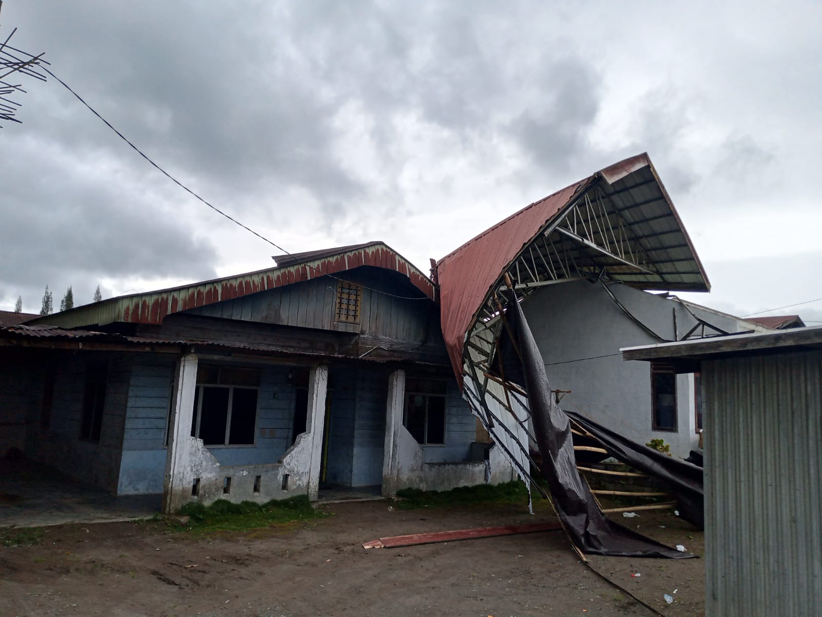 Beberapa atap rumah warga beterbangan, bahkan ada dinding rumah yang roboh diterpa angin,” ujar kepala desa saat diwawancarai.