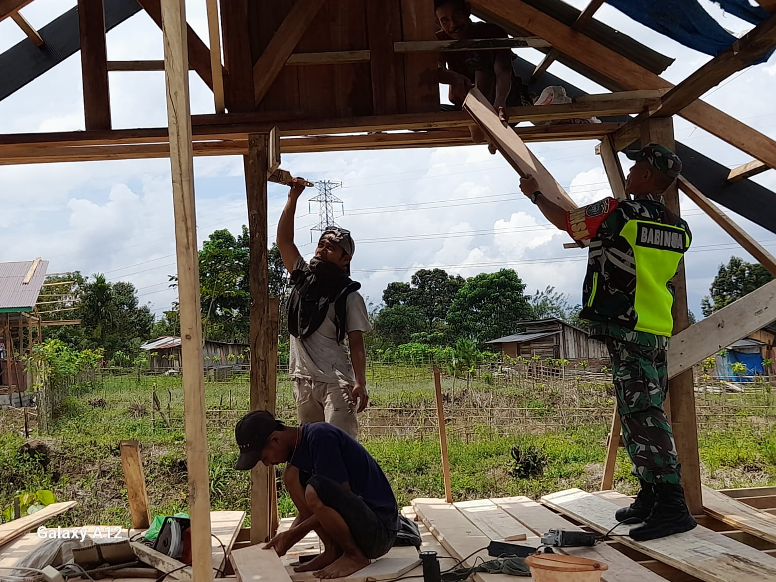 Hotnews.web.id|Redelong-:Kodim 0119/BM – Babinsa Koramil 04/PRG Sertu M Jakfar membantu warga membangun Rumah Kebun yang berada di wilayah binaan Desa Ulu Naron, Kecamatan Pintu Rime Gayo, Kabupaten Bener Meriah, Selasa (22/07/2025).