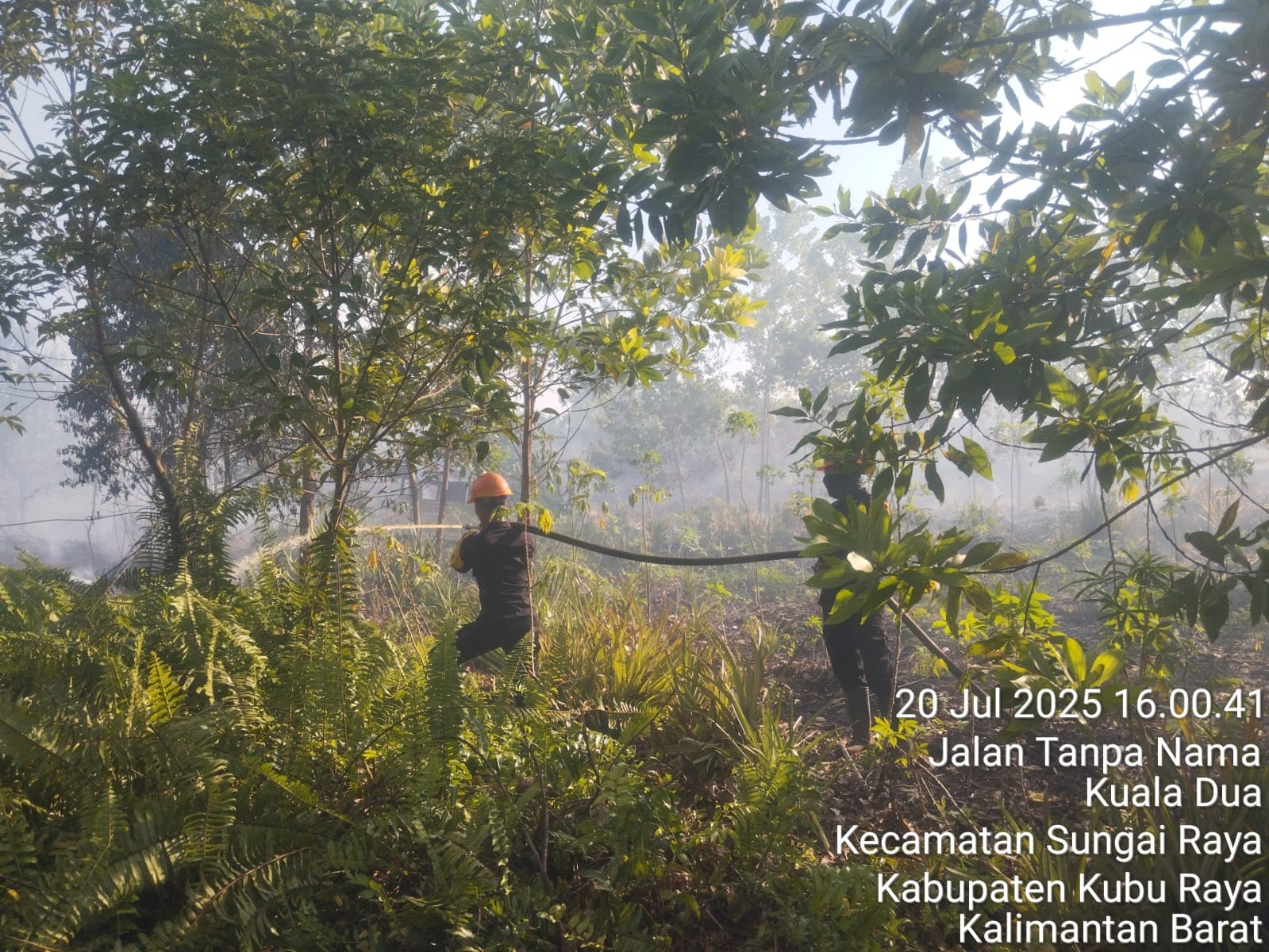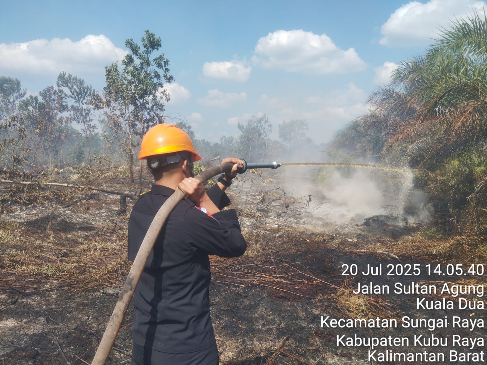 Hotnnews.web.id|Kalimantan Barat-: Kalimantan Barat — 21 Juli 2025 Satuan Brimob Polda Kalimantan Barat kembali bergerak cepat dalam penanganan kebakaran hutan dan lahan (karhutla) di wilayah rawan. Kali ini, pemadaman dilakukan di lahan kosong Jl. Sultan Agung Kuala Dua, Kecamatan Rasau Jaya, Kabupaten Kubu Raya, Senin (21/07).