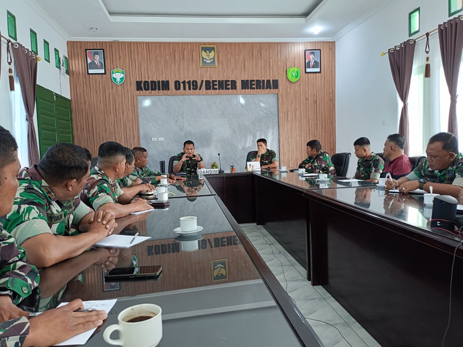 Letkol Inf Ahmad Fauzi Dandim 0119/BM dalam rapat tersebut menyampaikan tentang rencana tugas kedepan sebagai prosedur setiap pelaksanaan tugas.