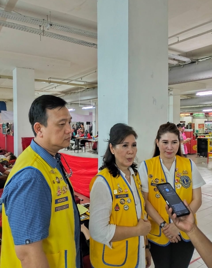 Ketua pelaksanaan Donro Darah atau PIC Lion Clun Makasssar 1 Ibu Maria Rosalina Twnnus di dampingi oleh Bendahara Lion Club Meike, dan Bapak Gunawan