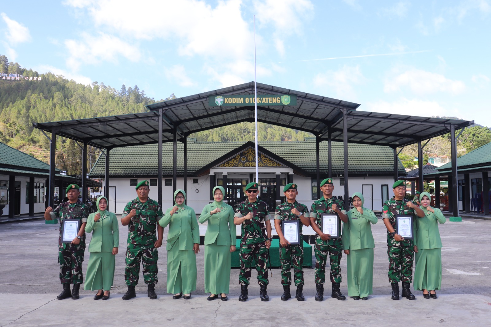 Dandim berharap pengalaman tugas yang berharga ini dapat dimanfaatkan sebaik baiknya guna membangun tugas lebih lanjut di satuan baru, penghargaan yang tinggi juga saya sampaikan kepada para istri anggota yang telah senantiasa setia mendampingi suami selama berdinas di kodim 0106/Ateng, serta tali silaturrahmi selama ini telah terjalin agar tetap di pertahankan serta di tingkatkan, jangan sampai terputus saya titipkan nama baik kodim 0106/Ateng ini di tempat yang baru,”Ucap Komandan Kodim 0106/ Ateng”.