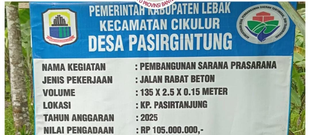 Dalam kegiatan proyek pembangunan sarana prasarana jalan rabat beton ini di biyayai melalui (DD) dana desa sebesar: Rp. 105.000.000.’ dengan tahun anggaran 2025, dan untuk volume pekerjaan tersebut: 135 x 2.5 x 0.15 meter dan untuk pembangunan tersebut itu sewa kelola, dan warga masyarakat setempat juga di perdayakan untuk bekerja,