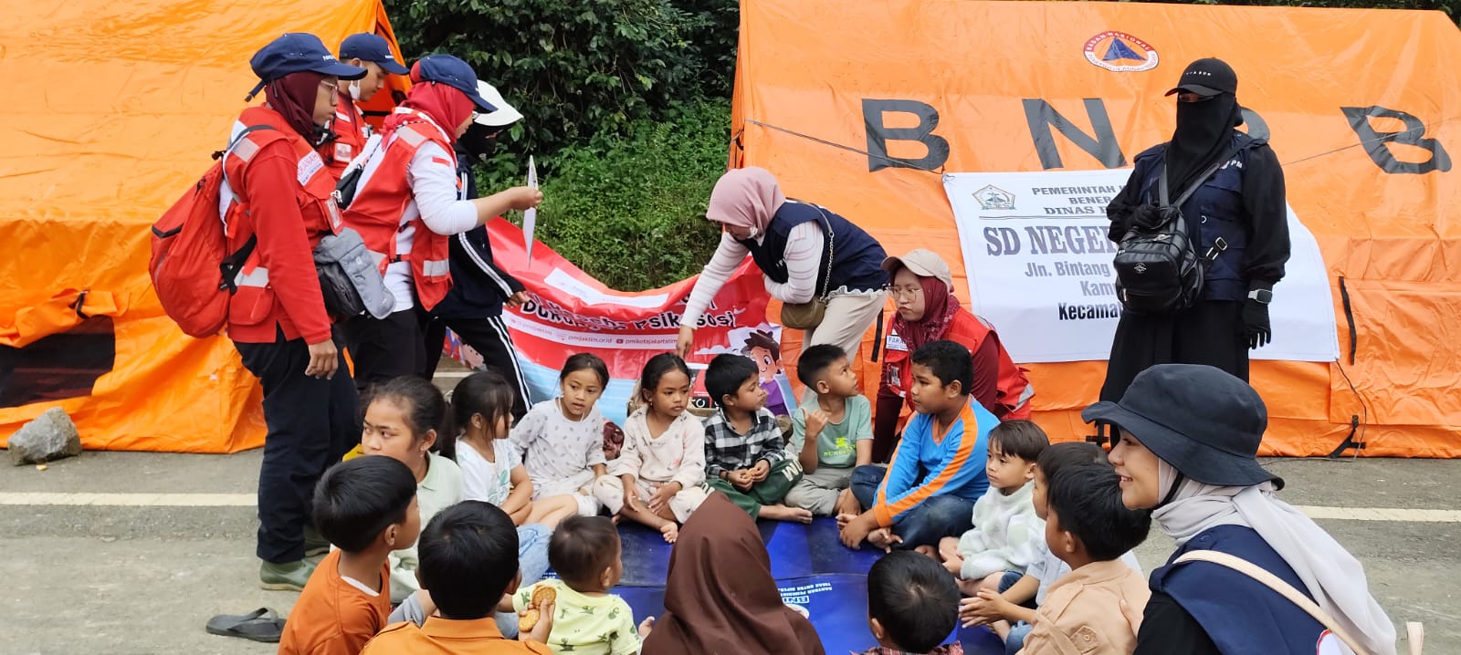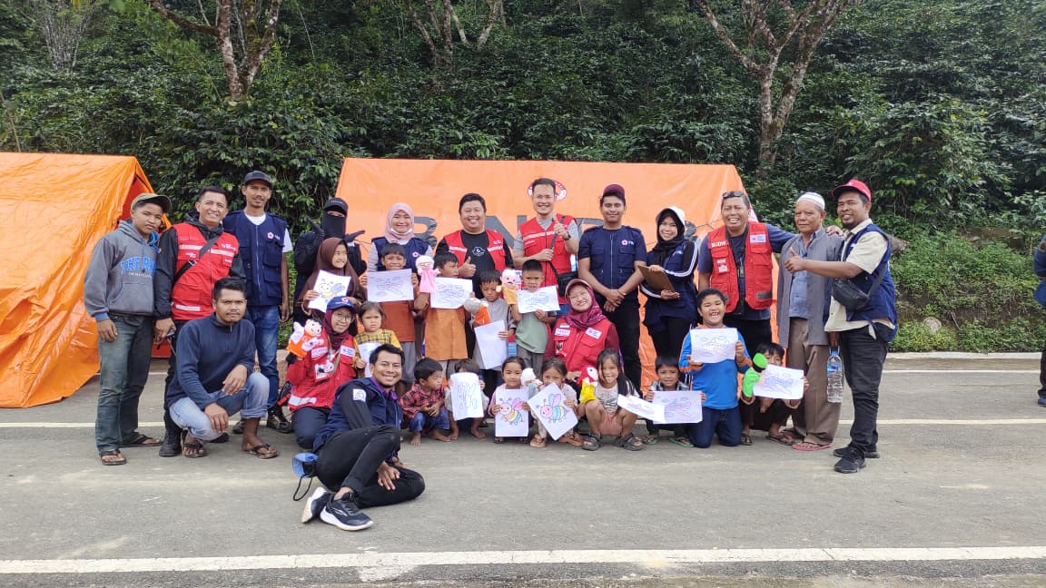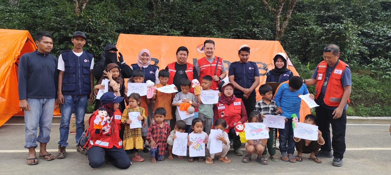 Keempat, Tim Relawan juga melaksanakan psikososial terhadap anak anak pengungsian dengan berdongeng, bercerita dan menggambar.