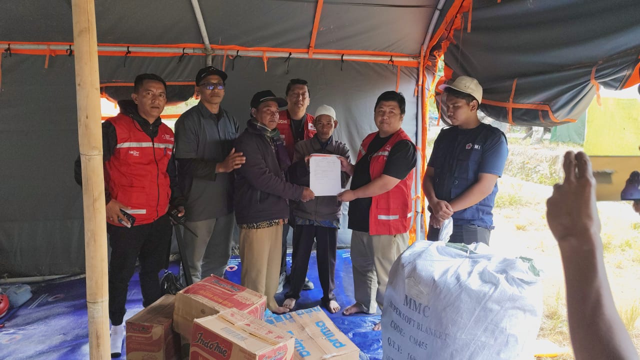 Distribusi bantuan di serahkan langsung oleh Ketua PMI Bener Meriah dr Jawahir Syahputra di dampingi pimpinan PMI DKI Jakarta Budhi Pranoto, Camat Pintu Rime Gayo dan Affuwan Elengan kepada Bedel(Plt Kepala Desa) Kampung Uning Mas.