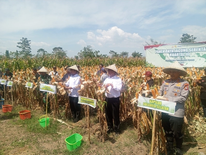 HotNews.com,Makassar,Sulsel–Panen Raya Jagung Serentak Kuartal III yang dilaksanakan di Dusun Sugitangnga II, Desa Pabbentengang, Kecamatan Bajeng, Kabupaten Gowa oleh Polda Sulsel Sabtu (27/09/2025).