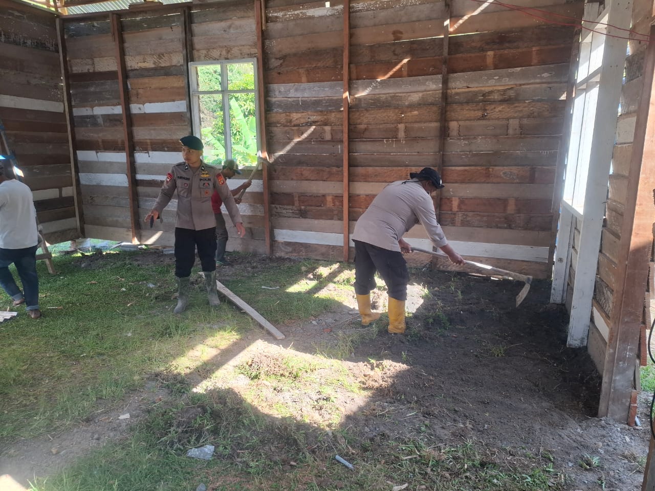 Dalam kegiatan tersebut, personel Polsek Silih Nara dan Brimob Polda Aceh bersama masyarakat melaksanakan pembersihan halaman dan lingkungan meunasah, sekaligus melakukan perbaikan pada bagian atap meunasah yang mengalami kerusakan.