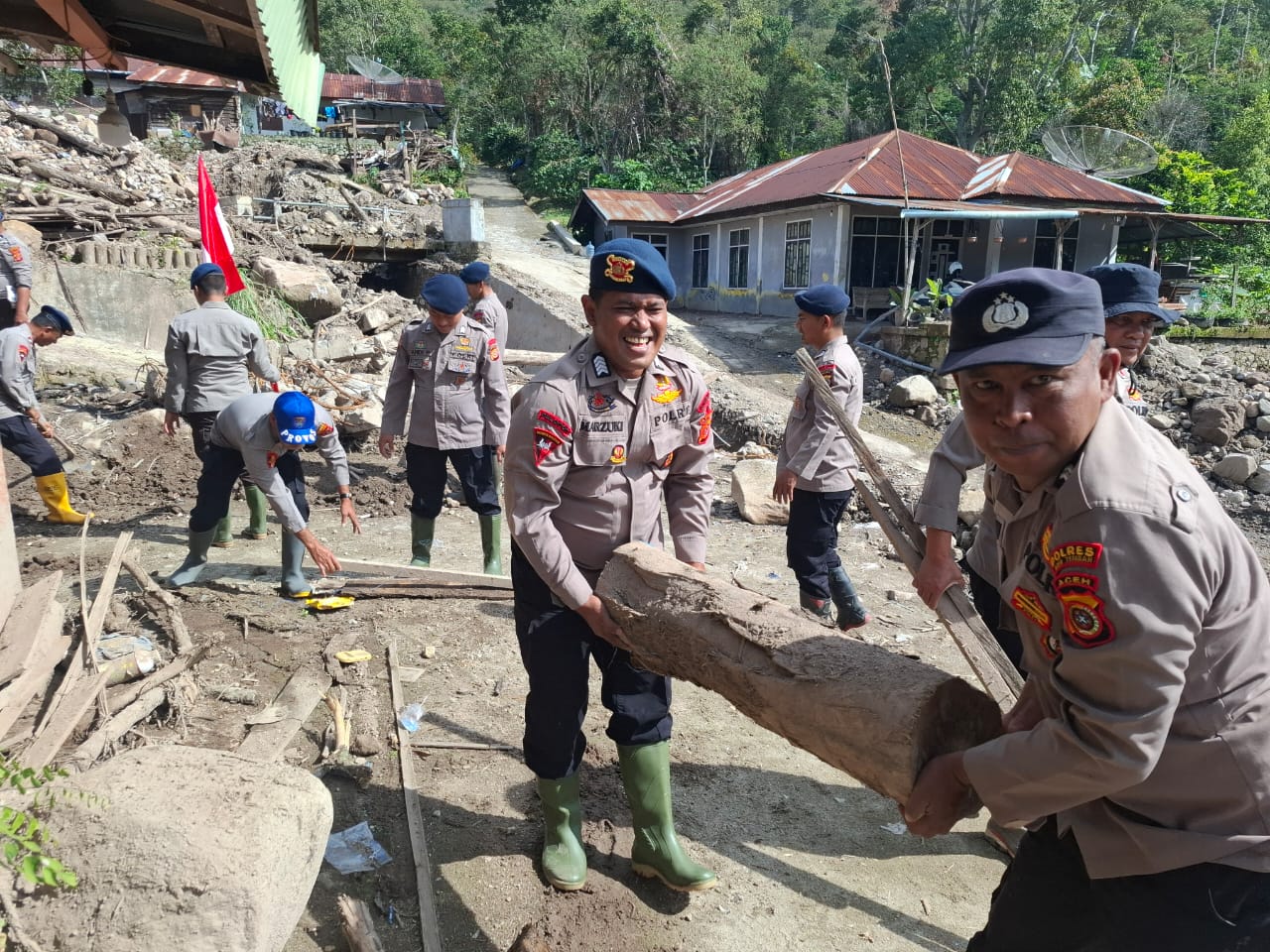 “Dengan semangat gotong royong dan kebersamaan, Polri berupaya membantu percepatan pemulihan pascabencana agar kehidupan masyarakat dapat segera pulih. Sinergi dengan TNI dan berbagai pihak lainnya akan terus kami perkuat,” ujar Kapolres.