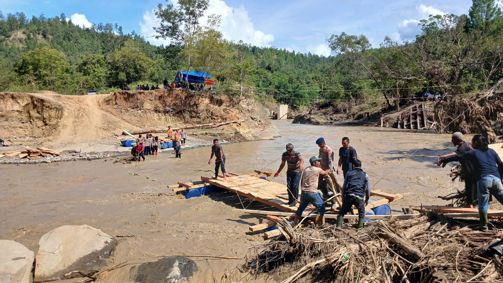 Di Kecamatan Linge, personel Polsek Linge bersama BKO Brimob, TNI, dan masyarakat bahu-membahu membangun akses penyeberangan berupa jembatan apung guna membuka keterisolasian lima desa, yakni Desa Linge, Jamat, Delung Sekinel, Kute Reje, dan Reje Payung. Alhamdulillah, pada sore hari jembatan tersebut telah dapat dilalui kendaraan roda dua.