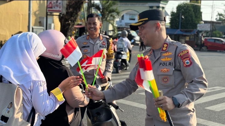 “Kegiatan ini sebagai bentuk ajakan kepada masyarakat untuk ikut serta merayakan Hari Kemerdekaan dengan mengibarkan bendera Merah Putih di kendaraan maupun di depan rumah masing-masing,” ujar Kapolres AKBP Douglas Mahendrajaya, Kamis (7/8/2025).